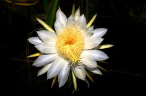 また、ドラゴンフルーツの花は、6月から9月が見ごろです。見事な大輪の花は夜に咲き、大きさは人の顔ほど、ほのかな香りと、一夜限りの儚さで、見る者の心を動かします。